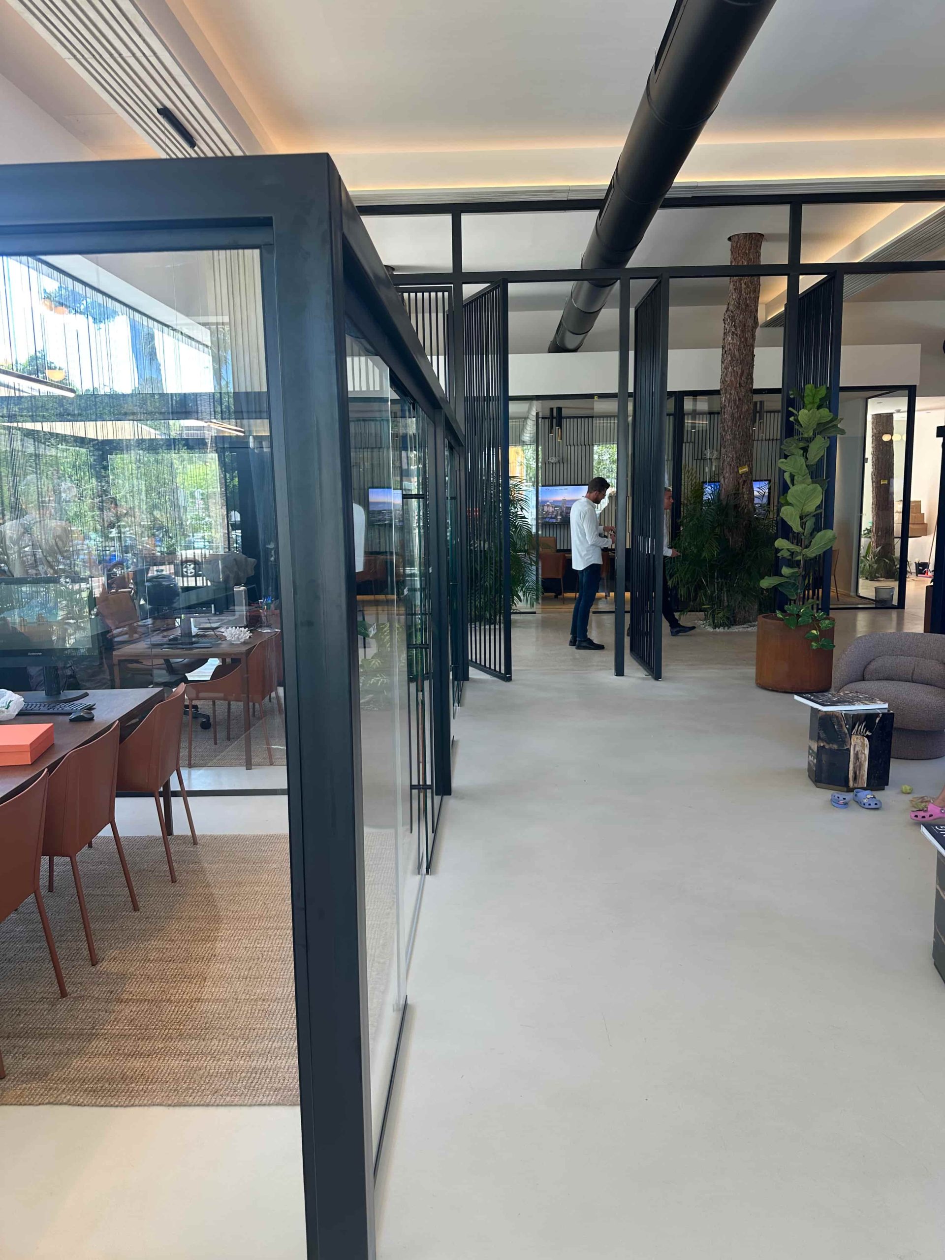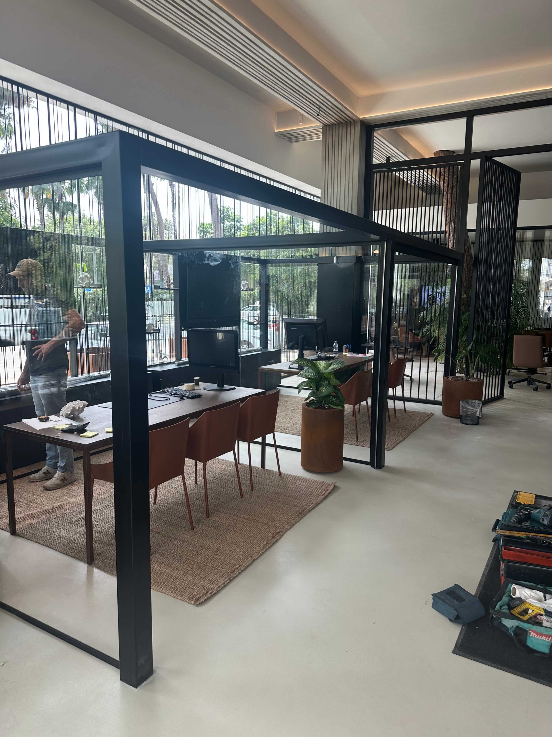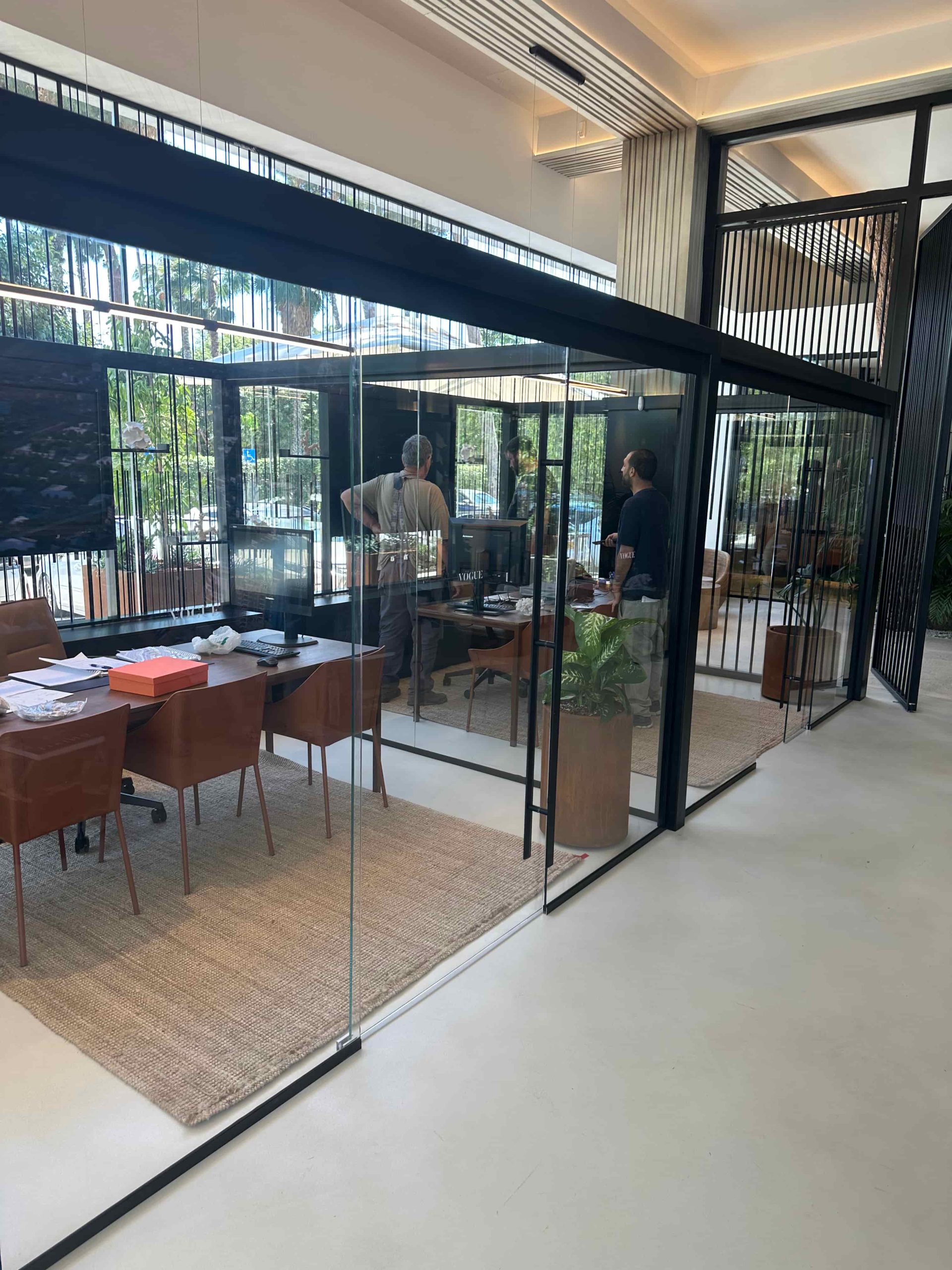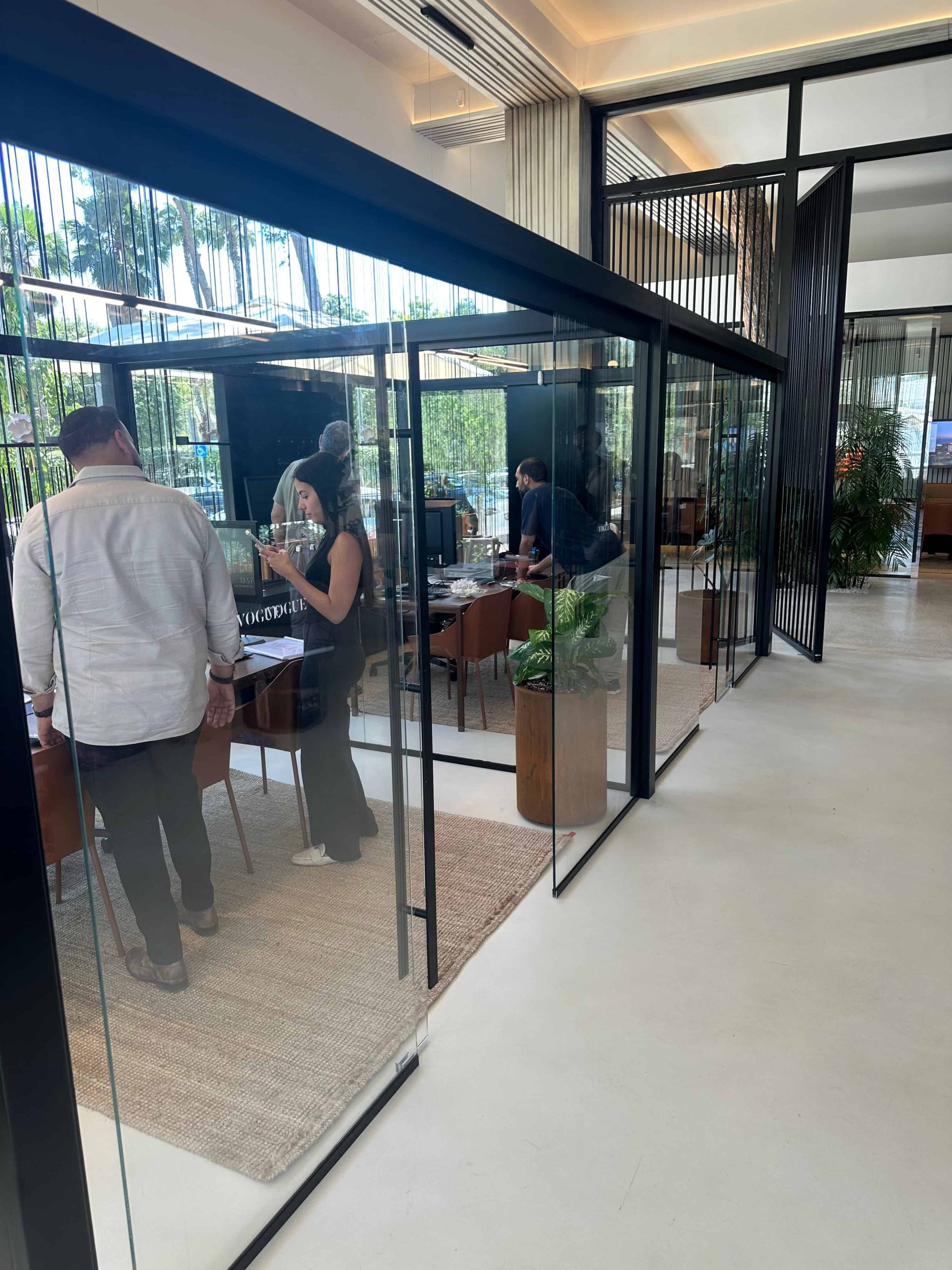 משרד מכירות יוקרתי המשווק את הפרויקטים של החברה. מחיצות ומערכות הזזה לחדרי משרדי המכירות.